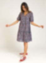 Short Printed Cotton Dress with Ruffles - Pink/Navy
